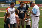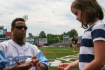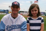 The highlight of the day, besides having a catch with my number one gal, was fist bumping Jake Fox, first basemen for the Patriots. Jake initiated the fist bumping with the family sitting in the front row before his first time up, which resulted in him hitting a two-run blast. His following first bumps with the family resulted in a double and another two-run homer. While awaiting his third at-bat the, the family left for food so we provided him fist bumps from the second row resulting in a ground out to first. Sorry, Jake.