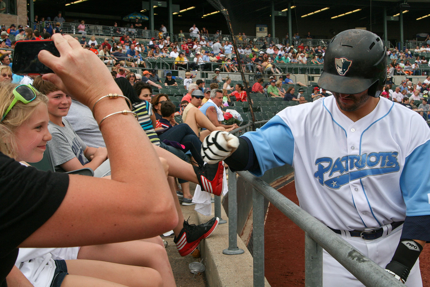 jake-fox-fist-bump Published June 19, 2013 at 1500 × 1000 in Father’s Day at Somerset Patriots ← Previous Next → Patriots Jake Owen fist bumps the girls in the first row going 3 for 4 with 2 home runs and a double