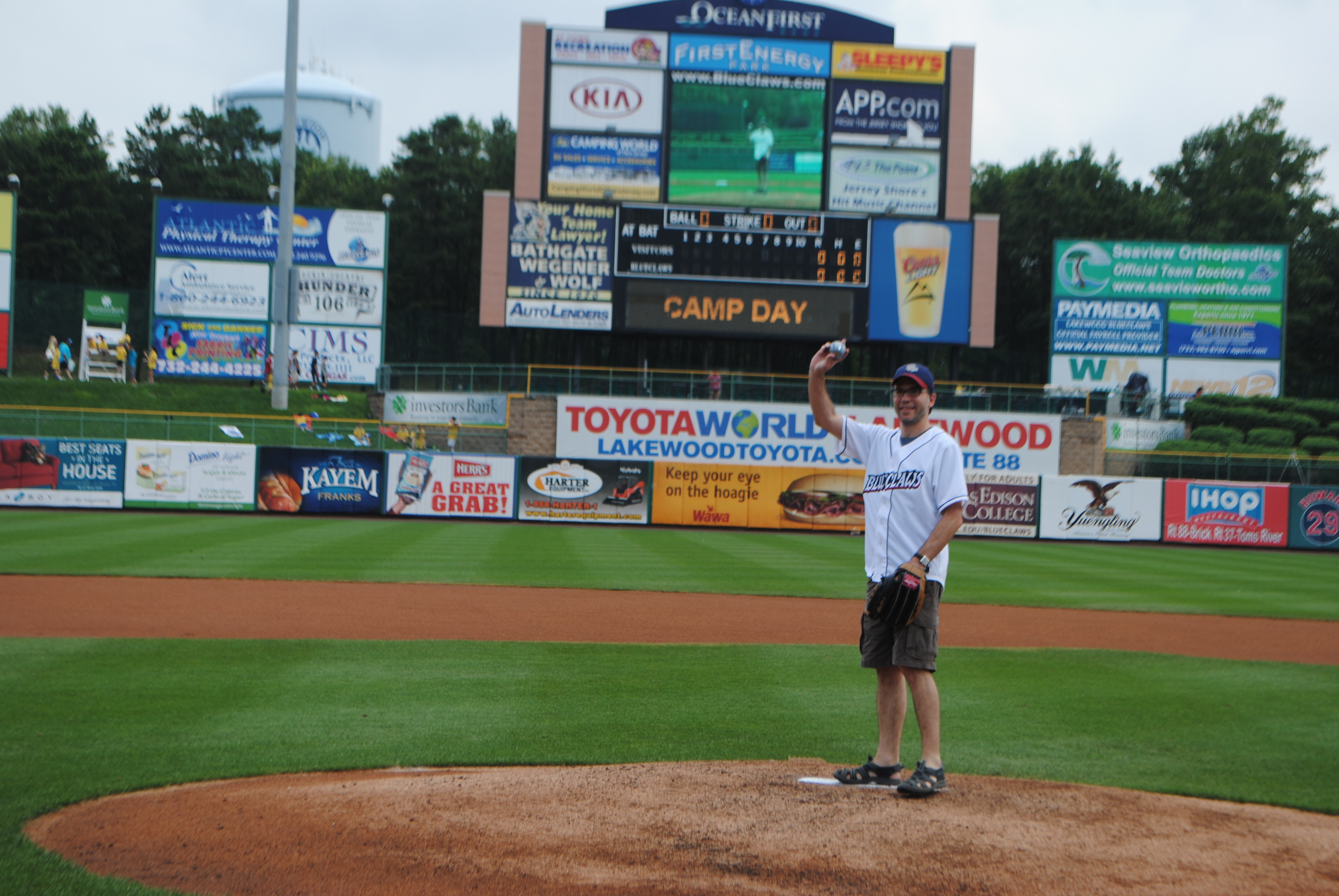 DSC_0426 Published July 12, 2013 at 3872 × 2592 in First Pitches at Lakewood ← Previous Next → John holds up his ball…photo credit: Dave Schofield