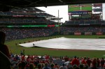 The rain was light at first, but quickly intensified. The Phillies grounds crew wasted no time getting the tarp on the field, and we then spent the next 45 minutes waiting for the storm to pass through. After the storm we moved to the first base side of the field, near the equivalent of Section 105 at the IronPigs’ Coca Cola Park, and spent the rest of the game there.