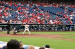 Our game was great, despite the Phillies blowing several opportunities to win the game. We arrived at the game and then spent an inning or two chowing down on Philly cheese steaks, drinking Troeg’s Dreamweaver, and watching the game. We took our seats — Section 148, overlooking centerfield — and immediately began chanting “Go ‘Pigs!” in support of Domonic Brown, Kevin Frandsen, Darin Ruf, and Jonathan Pettibone, all of whom have been called up from the Triple A IronPigs.