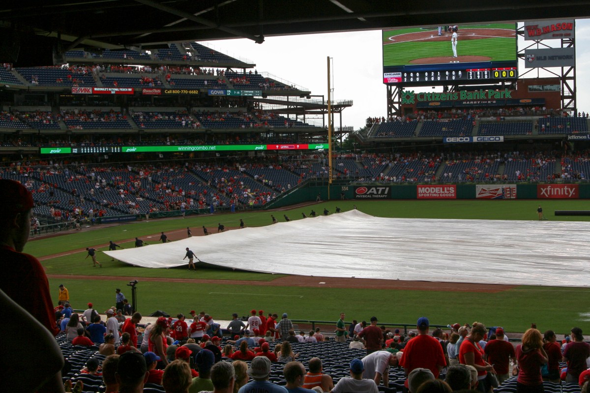 IMG_1088a Published July 14, 2013 at 3620 × 2413 in Day 5: Phillies vs. White Sox ← Previous Next → The tarp is removed after the 30 minute rain delay